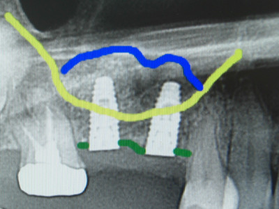 ただこの部位の骨幅が歯槽頂より5ミリほどありましたので同時法にてインプラントを問題なく埋入いたしました。