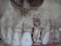 両サイドの健全歯を削るブリッジによる治療は避けたいとの強いご意向でインプラントオペを施術させていただいた次第です。