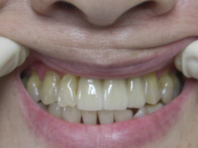 午前中のオペ後に前歯部に最終の上部構造体をセットさせて頂いた患者様がいらっしゃいましたので、ご了解の上で画像をアップさせて頂きました。