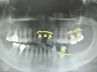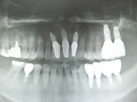 この様な前歯部欠損の場合で臼歯部での垂直的な咬合が崩壊してしまっている場合は、まず臼歯部からの咬合の再構築を優先させなければいけません、前歯部歯牙は臼歯部でのしっかりとした垂直的な噛みあわせがあるからこそ守られているという事を認識しておく必要がありますね。!