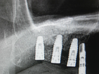 今日のインプラントオペは右上臼歯部です。この部位は上顎洞底からの骨の厚みが4ミリ程しかありませんでしたので、先にサイナスリフトを行い同時法でインプラントを埋入いたしました。静脈鎮静下でのオペでしたので患者様も夢心地の内にオペが終わったのではないでしょうか。 最後の2枚は定期チェックにいらっしゃった患者様の画像です、ご了解の上でアップさせて頂きました、サイナス後、9年ほど経過しておりますがしっかり噛み込めており問題なしです。