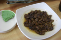 出されたポンデギという蚕のさなぎ高タンパク低カロリーで美味しいそうですが、、、、、、、、。